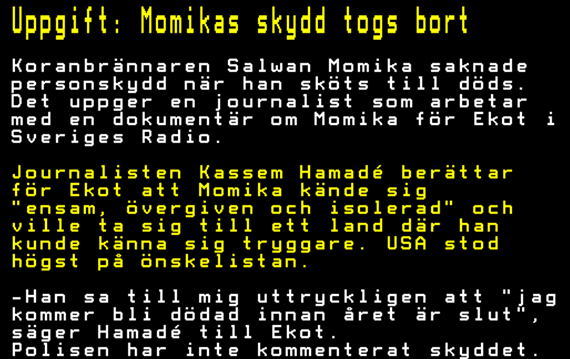 است به واحد مرکزی خبر رادیو سوئد (اکوت) گفت که سلوان مومیکا به وی گفته