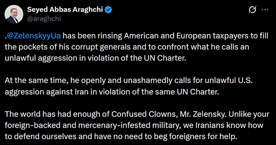 اظهارات زلنسکی واکنش تند عباس عراقچی را در پی داشت.