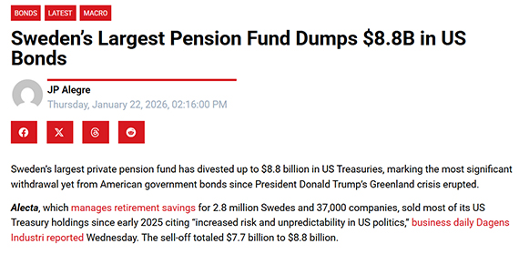 بزرگترین خروج ثبتشده یک نهاد سوئدی از بازار اوراق خزانهداری آمریکا به
